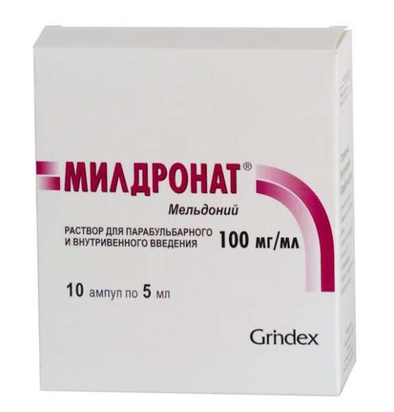 МІЛДРОНАТ розчин для ін'єкцій 10% амп. 5мл №10