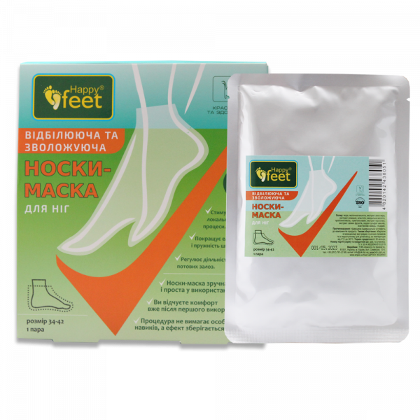 668027 НОСКИ-МАСКА для ніг відбілююча і зволожуюча «HAPPY FEET» пара