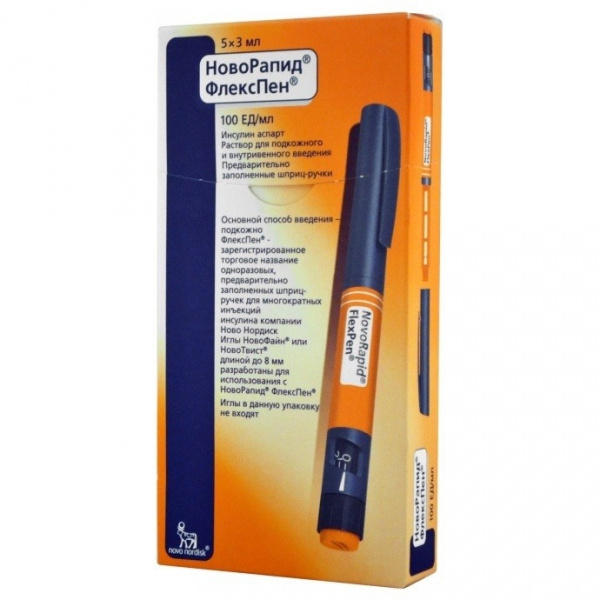 НОВОРАПІД ФЛЕКСПЕН розчин для ін'єкцій 100од/мл картридж 3мл в шприц-ручці №5