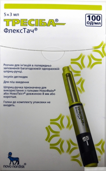 ТРЕСІБА ФЛЕКСТАЧ розчин для ін'єкцій 100од/мл картридж 3мл вкладений в шприц-ручку №5