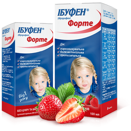 ІБУФЕН форте суспензія оральна 200мг/5мл з ароматом полуниці 100мл