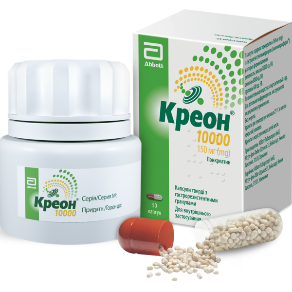КРЕОН 10 000 капс. с гастрорезист. гран 150 мг №50