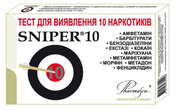 ТЕСТ МНОГОПРОФИЛЬНЫЙ Д/О НАРКОТИКОВ В МОЧЕ СНАЙПЕР «SNIPER»10 (MOR, COC, AMP, MET, THC, BZD, MDMA)