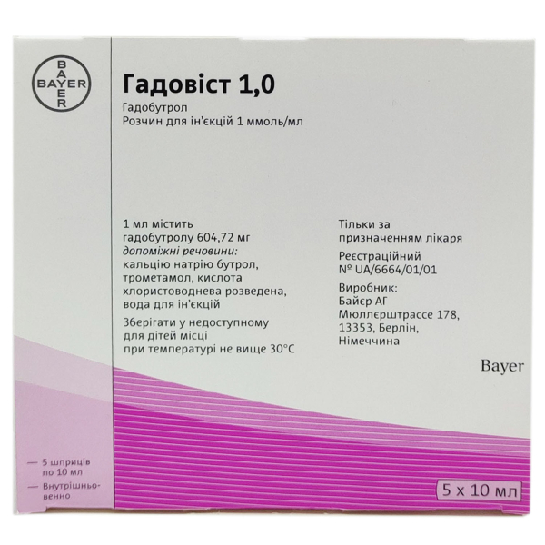 ГАДОВИСТ 1,0 раствор для инъекций 1 ммоль/мл шприц 10 мл №5