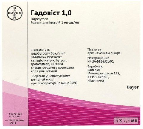 ГАДОВИСТ 1,0 раствор для инъекций 1 ммоль/мл шприц 7,5 мл №5