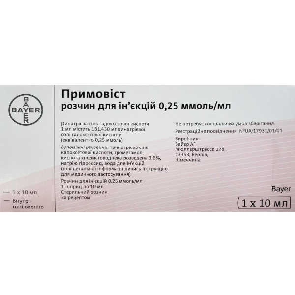 ПРИМОВИСТ раствор для ин. 0,25 ммоль/мл шприц 10 мл №1