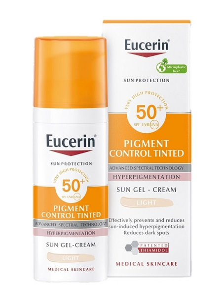 ЭУЦЕРИН «EUCERIN» ПИГМЕНТ КОНТРОЛ солнцезащитный крем-гель с тонирующим эффектом светлый SPF50 50мл