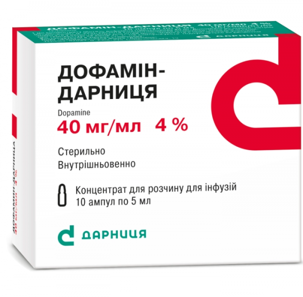 ДОФАМИН-ДАРНИЦА конц. д/р-ра д/инф. 40 мг/мл амп. 5 мл №10