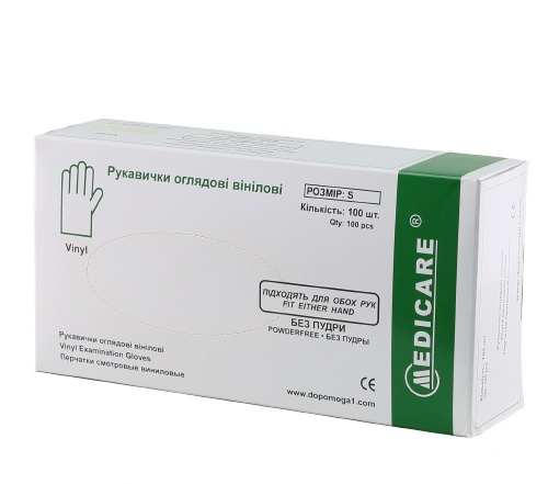 ПЕРЧАТКИ СМОТРОВЫЕ НЕСТЕРИЛЬНЫЕ «MEDICARE» размер S пара, виниловые, неприпудрен. №50