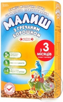 СМЕСЬ СУХАЯ НА МОЛОЧНО-ЗЕРНОВОЙ ОСНОВЕ «МАЛЫШ» С ГРЕЧНЕВОЙ МУКОЙ 350 г с 4 месяцев