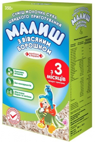 СМЕСЬ СУХАЯ МОЛОЧНАЯ «МАЛЫШ БЫСТРОГО ПРИГОТОВЛЕНИЯ» С ОВСЯНОЙ МУКОЙ (ТОЛОКНОМ) с 3 месяцев 350 г