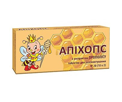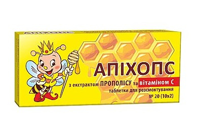 АПИХОПС С ЭКСТРАКТОМ ПРОПОЛИСА И ВИТАМИНОМ C табл. для рассасывания 0,5 г №20