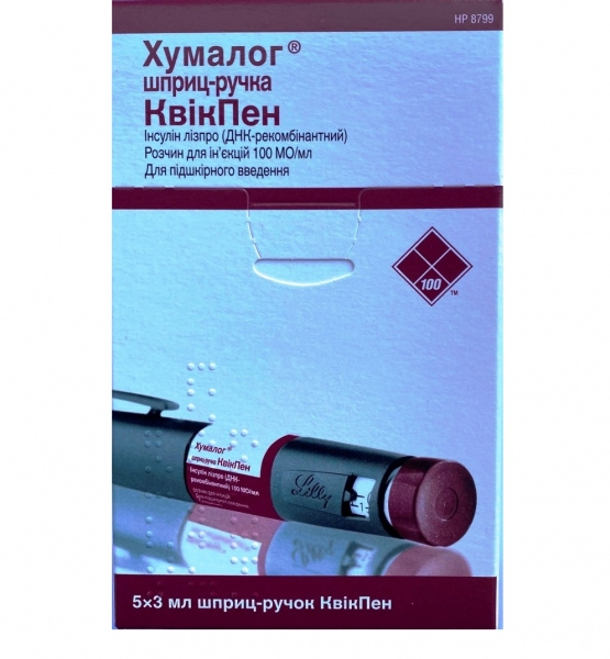 ХУМАЛОГ раствор для инъекций 100 МЕ/мл шприц-ручка КвикПен 3мл №5