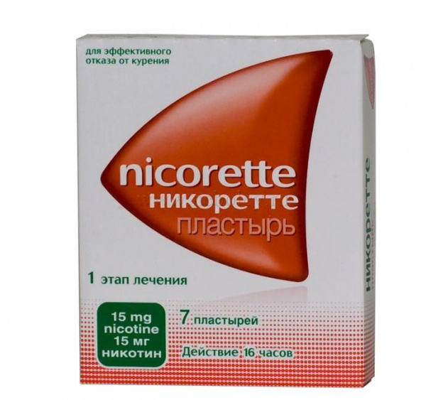 НИКОРЕТТЕ пластырь трансдерм. 15 мг/16 часов пакетик №7