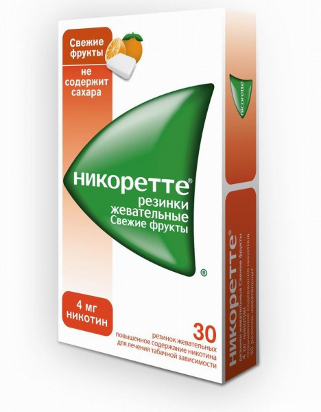 НИКОРЕТТЕ СО ВКУСОМ СВЕЖИХ ФРУКТОВ жев. резинка лечебн. 4 мг блистер №30