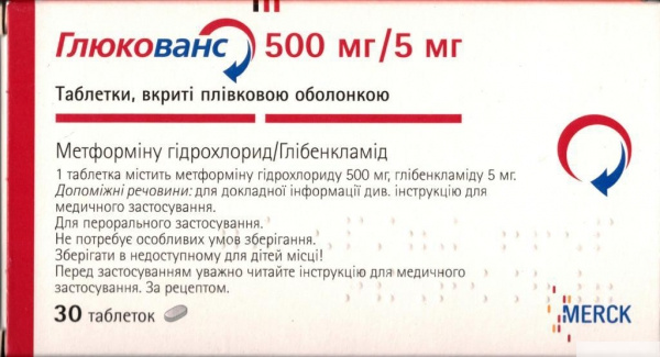 ГЛЮКОВАНС табл. п/о 500 мг + 5 мг №30