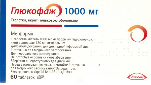ГЛЮКОФАЖ XR табл. пролонг. дейст. 1000 мг №60
