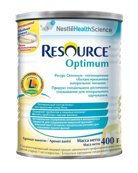 СМЕСЬ СУХАЯ ПОЛНОЦЕН. СБАЛАНСИРОВ. РЕСУРС ОПТИМУМ С АРОМ. ВАНИЛИ Д/ДЕТЕЙ СТАРШЕ 7 ЛЕТ И ВЗР-Х 400 г