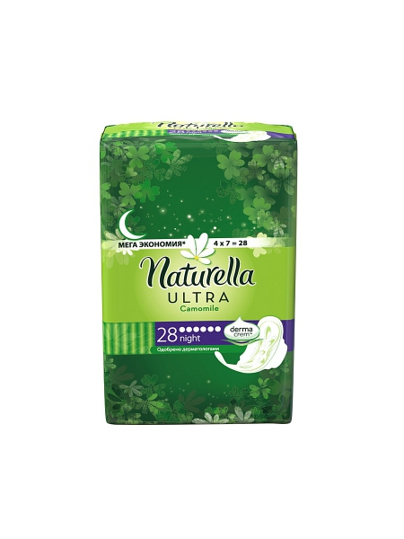 276365 ПРОКЛАДКИ ГИГИЕНИЧЕСКИЕ NATURELLA ULTRA CAMOMILE NIGHT c крылышками №28