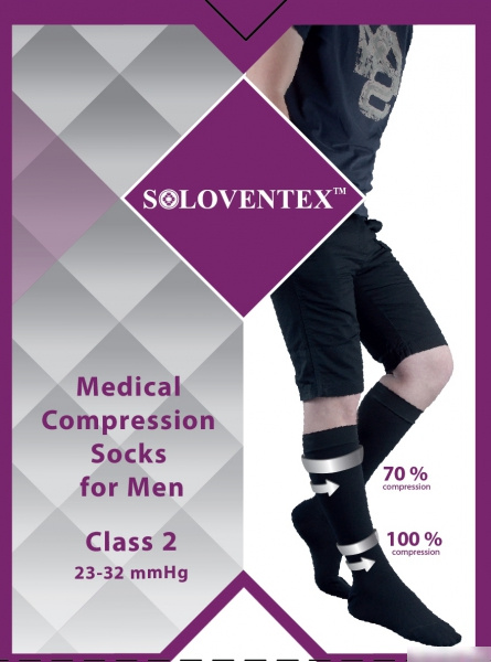 ГОЛЬФЫ МУЖСКИЕ SOLOVENTEX с откр. носком 2кл. компр. очень высокие черные(L)