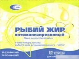 РЫБИЙ ЖИР ВИТАМИНИЗИРОВАННЫЙ ДЛЯ ДЕТЕЙ капс. мягкие желат. 300 мг №50
