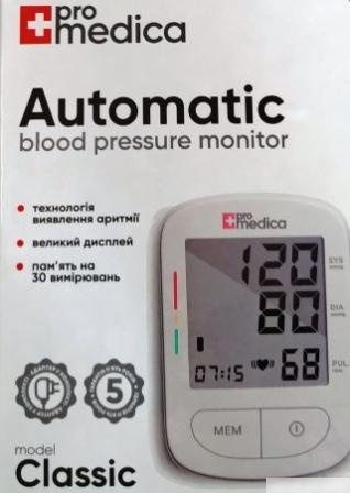 ТОНОМЕТР ИЗМЕРИТЕЛЬ АРТЕРИАЛЬНОГО ДАВЛЕНИЯ АВТОМАТИЧЕСКИЙ «PROMEDICA» classic