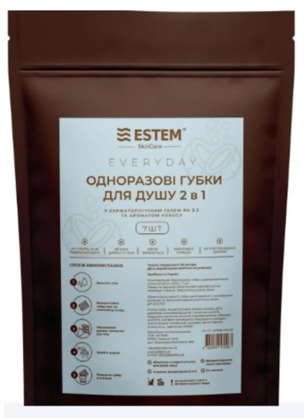 ГУБКА одноразовая с дерматологическим гелем для душа Estem Everyday №7
