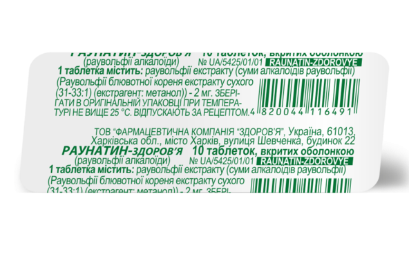 РАУНАТИН-ЗДОРОВЬЕ табл. п/о 2 мг блистер №10