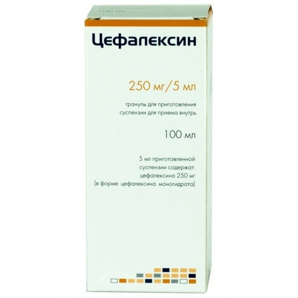 ЦЕФАЛЕКСИН гран. для приготовления суспензии 250 мг/5 мл фл. 40 г, для приг. 100 мл суспензии №1
