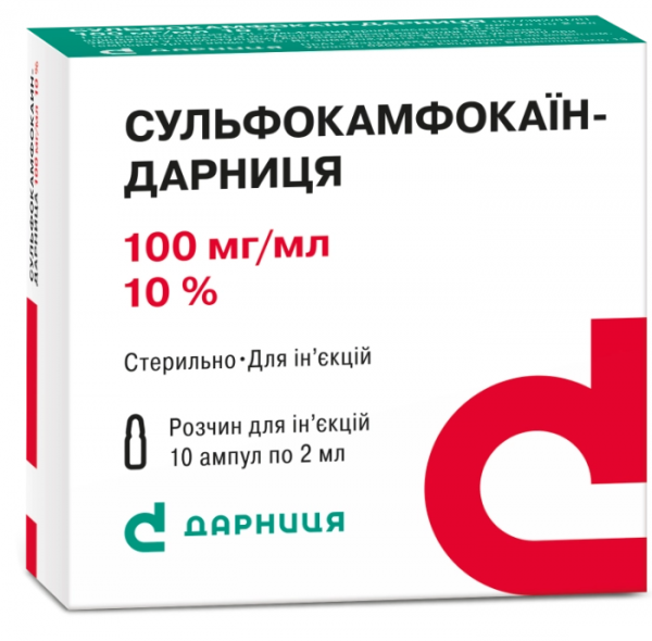 СУЛЬФОКАМФОКАИН раствор для инъекций 100 мг/мл амп. 2 мл №10