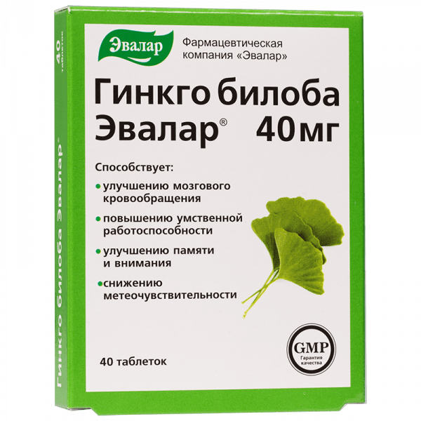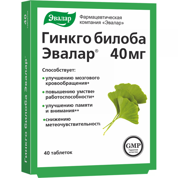 ГИНКГО БИЛОБА «ЭВАЛАР» табл. 0,2 г №40