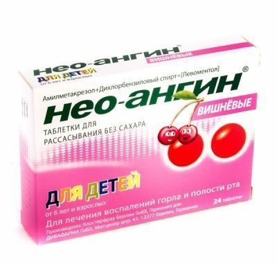 НЕО-АНГИН БЕЗ САХАРА СО ВКУСОМ ВИШНИ табл. для сосания №24