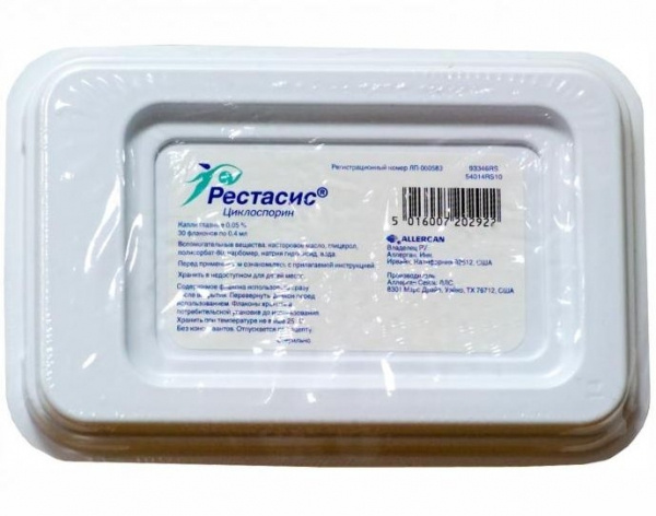 РЕСТАСИС эмульс. глазная 0,5 мг/мл фл. д/однораз. исп. 0,4 мл, в уп. из п/п №30
