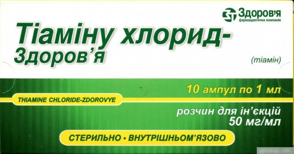 ТІАМІНУ ХЛОРИД-Здоров'я розчин для ін'єкцій 5% амп. 1мл №10